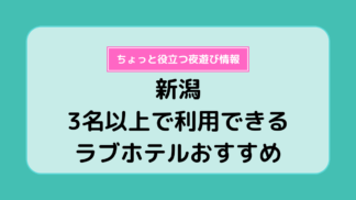 新潟市で、お泊り女子会や推し会、部屋飲みをするなら「3名以上で利用できるラブホテル」がおすすめです。 新潟市は新潟県の下越地方に位置する人口約75万人の市です。新潟県の県庁所在地で、市域には8つの行政区が設けられています。市の中心部にあたる...