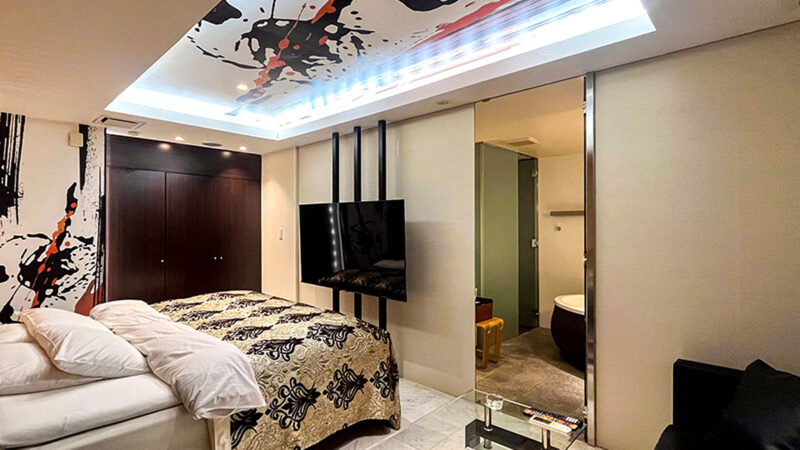 全室にカラオケやVOD、Wi-Fiを完備し、遊び心のある滞在が楽しめます。露天風呂やサウナ、岩盤浴を備えたお部屋のほか、日焼けマシーンやランドリー付きのお部屋もあり、設備の充実度も魅力。リゾート感あふれるバリスタイルの内装は写真映えも抜群で、コスプレ衣装をレンタルして撮影会を楽しむのにもぴったりです。