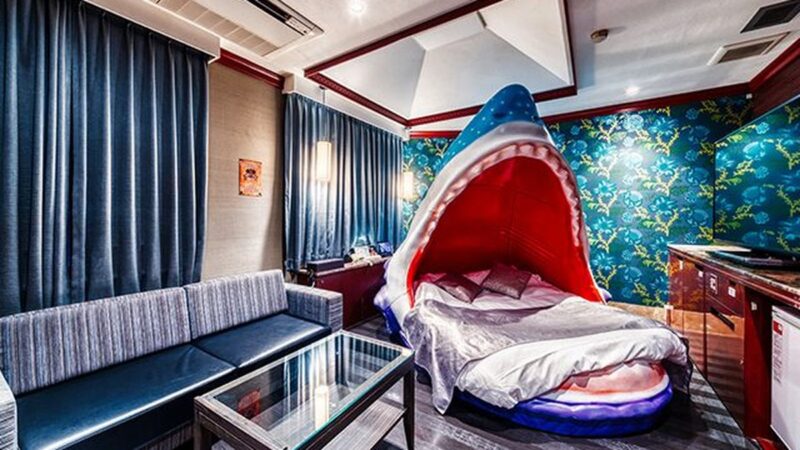 こちらは「海賊」をテーマにした人気ラブホテルで、露天風呂やドライサウナを併設したお部屋の他、アクアリウムのあるお部屋、サメベッドのお部屋、貝殻ベッドのお部屋など、撮影会にぴったりの客室が揃っています。