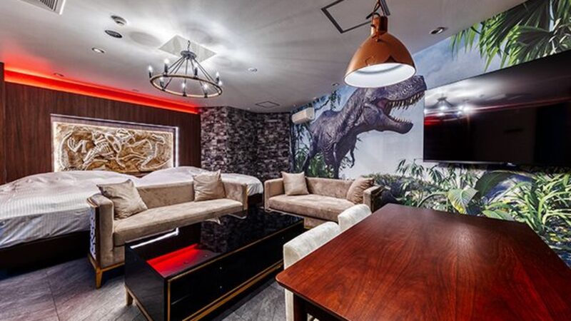 2021年9月にリニューアルオープンしたこちらは「恐竜」をテーマにしたラブホテルで、恐竜ライド付きのお部屋、アクアリウムのあるお部屋、プラネタリウムのあるお部屋など、コスプレ撮影会に最適なお部屋が多数揃っています。