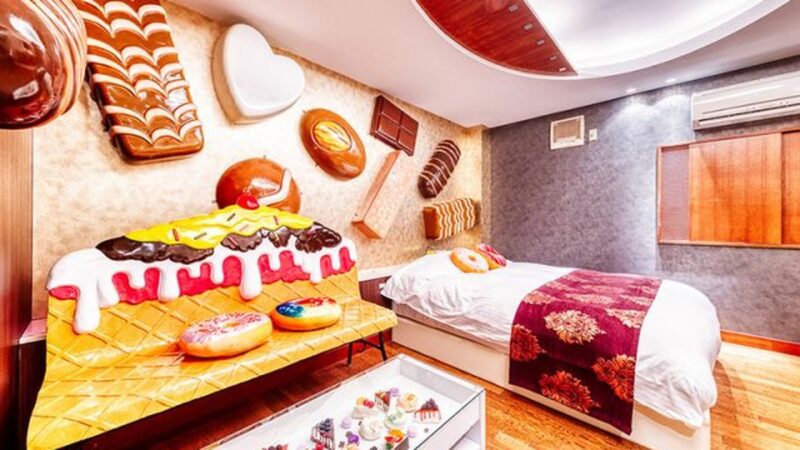 「お菓子」をテーマにしたこちらのホテルは、客室の随所にお菓子モチーフのアイテムが散りばめられており、どのお部屋も非日常感たっぷり。
