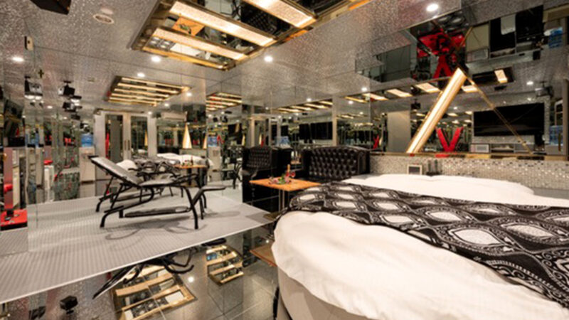 駐車場から直接お部屋にチェックインできるため、お忍びデート中のカップルにも安心。浴室TVやジェット・バブルバス、VOD、Wi-Fiなどを完備したラグジュアリーな空間で、優雅なホテルステイを満喫できます。