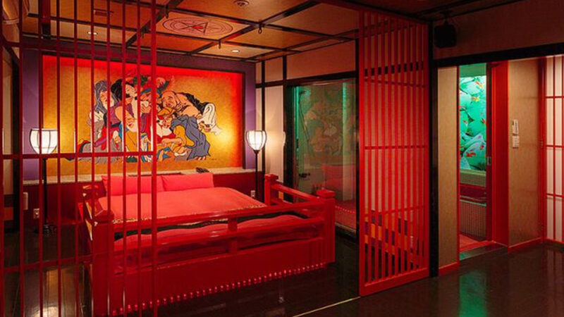 館内には「遊郭」をイメージしてデザインされた和モダンルーム・410号室があり、非日常感あふれる空間を楽しめるお部屋として好評です。