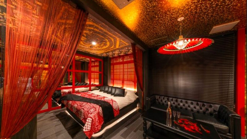 館内には「日本」をテーマにした和風ルームがあり、格子窓風の照明や華やかな天井装飾、天蓋ベッドなどを取り入れた空間は写真映えも抜群です。