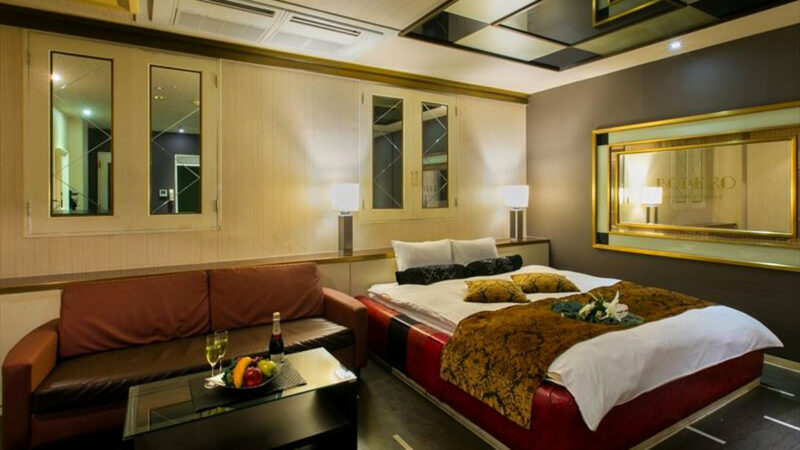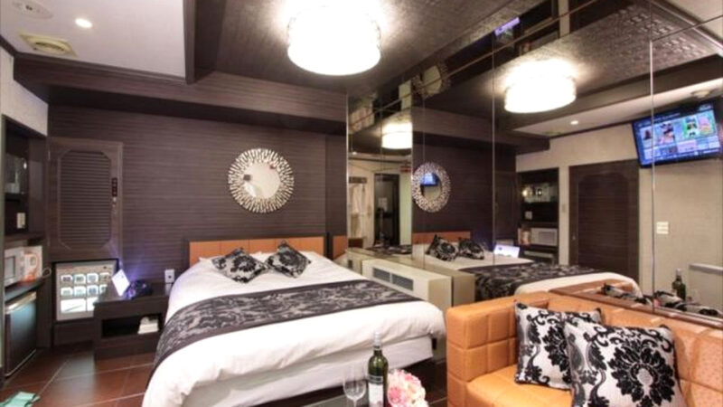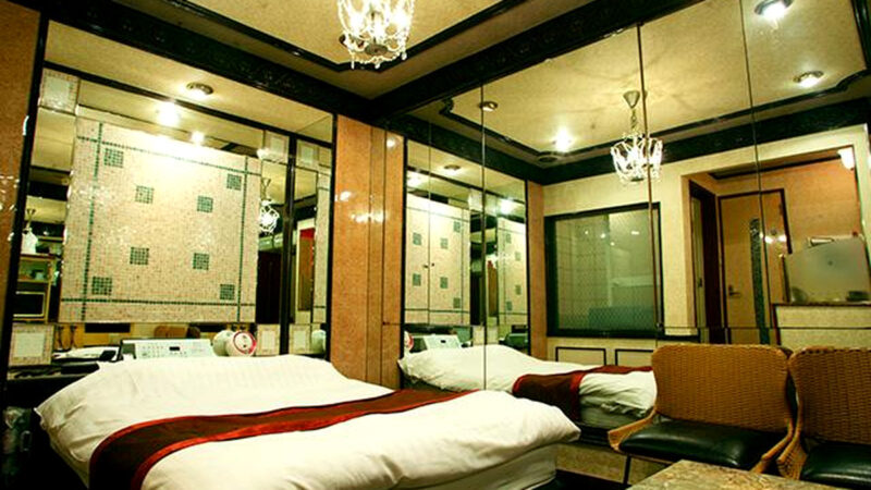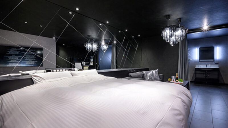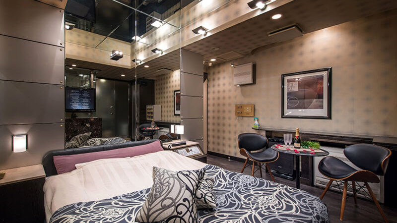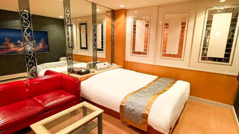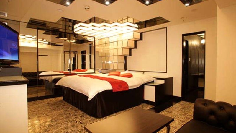 壁一面に鏡が張り巡らされた幻想的でラグジュアリーなお部屋があるラブホテルです。