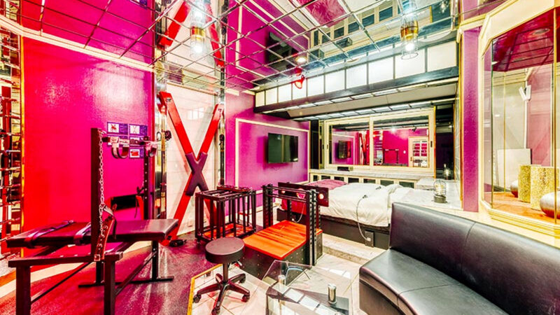 X字架や拘束椅子、ギロチン台、手枷足枷などを導入した本格的なSMルームでアブノーマルな気分を味わってみませんか?鏡張りのお部屋なら視覚的な刺激も堪能することができますよ。その他に、エッチなVRを導入したお部屋も人気です。無料レンタルアイテムも充実しているので、こちらもぜひご利用ください。