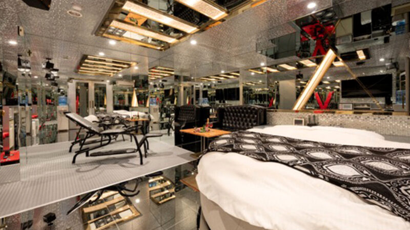 なんと全室が鏡張りとなっており、まるで別世界のような空間を演出。