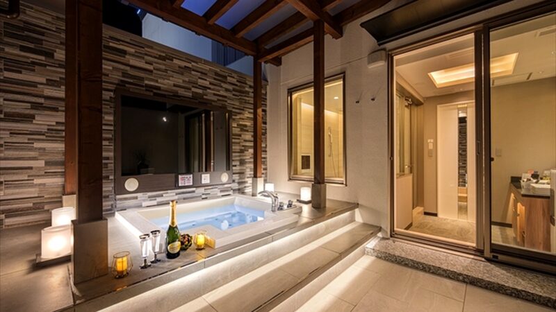 露天風呂と本格的なサウナを導入した213号室は、ラグジュアリーな空間で女子会やホテル飲み会を楽しみたい方に特におすすめ。