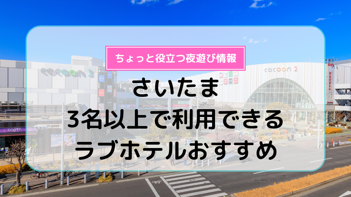 そんなさいたま市には、3名以上で利用できるラブホテルが10軒以上あり、観光や旅行の拠点としても人気です。