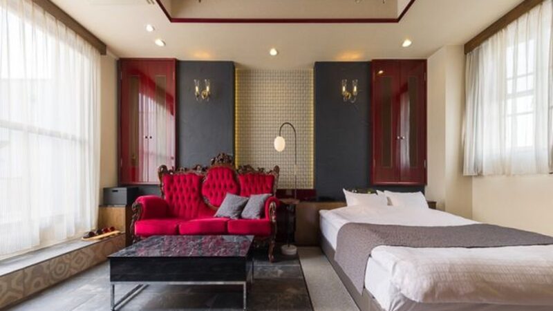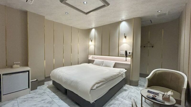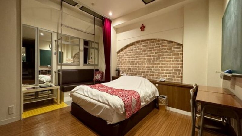 こちらは様々なコンセプトルームを備えた人気ラブホテル。館内2階には電車の車内をイメージした207号室、秘書室風の210号室、女子校風の211号室など、多種多様な非日常空間が揃っています。