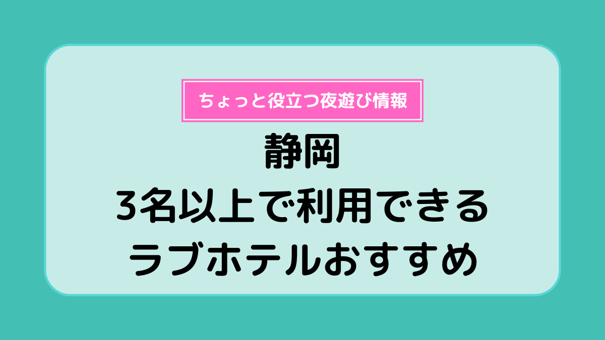静岡市内で3名以上で利用できるラブホテルをお探しの際は【ちょっと役立つ夜遊び情報・よるよる】をぜひ参考にしてみてくださいね。静岡で素敵な思い出をたくさん作りましょう。