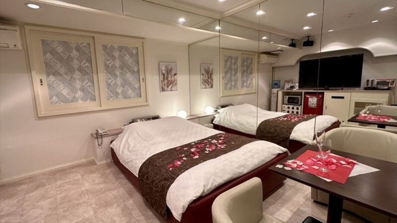 こちらは高級シティホテルさながらのラグジュアリー空間が魅力の人気ラブホテル。館内には1時間無料で利用できる「貸切露天風呂」があり、開放感のあるロケーションで優雅なバスタイムを楽しめます。