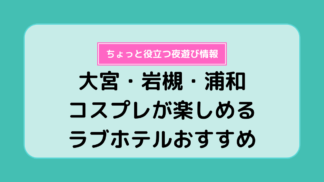 大宮・岩槻・浦和でコスプレを楽しむなら、ラブホテルがおすすめです。「普段のデートには飽きてきた」「女子会でコスプレをしてみたい」「コスプレ撮影会をしてみたい」そんな方は、「コスプレが楽しめるラブホテル」を利用してみませんか? ラブホテルなら...
