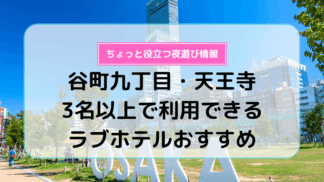 ラブホテル 谷町九丁目・天王寺の3名以上で利用できるラブホテルおすすめ5選! 谷町九丁目・天王寺で女子会、オフ会、ホテル飲み会をするなら「3名以上で利用できるラブホテル」を利用してみませんか? 谷町九丁目エリアは、大阪府大阪市天王寺区生玉前町に所在するOsaka Metroの駅「谷町九丁目駅」周辺一帯に広がる市街地で... 2025.10.14 ラブホテル