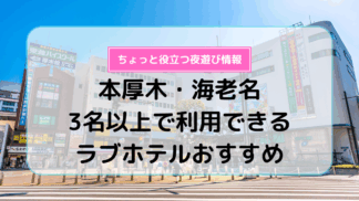 ラブホテル 本厚木・海老名の3名以上で利用できるラブホテルおすすめ 神奈川県の本厚木・海老名エリアにも、「3名以上で利用できるラブホテル」があります♪3名以上で利用できるラブホテルは、お泊り女子会やホテル飲み会、推し会、サウナ同好会の会場として利用するのにおすすめです。 ラブホテルならプライベートな空間なの... 2025.10.31 ラブホテル