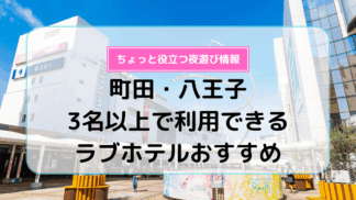 ラブホテル 町田・八王子の3名以上で利用できるラブホテルおすすめ7選! 町田・八王子エリアで女子会やホテル飲み会、オフ会などをするなら「3名以上で利用できるラブホテル」がおすすめです。 町田市は東京都の多摩地域南部に位置する人口約43万人の都市です。JR東日本/小田急電鉄の「町田駅」は、多摩地域随一の利用者数を... 2025.10.03 ラブホテル